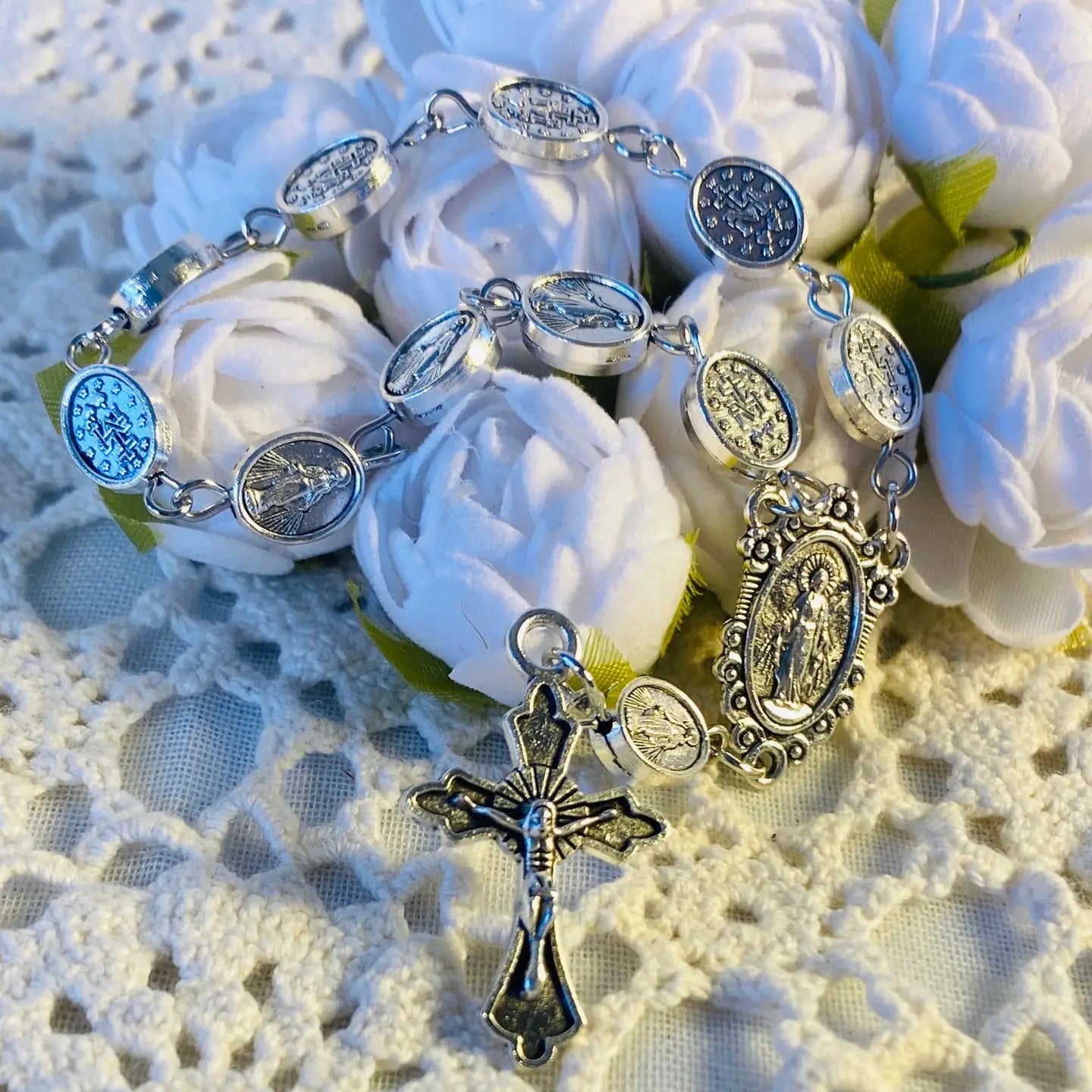Elevate your retail offerings with our stunning Metal Marian Decade, delicately encased in a sleek plastic presentation. Crafted with precision and reverence, each bead embodies the essence of devotion to Mother Mary. This exquisite piece is not just an accessory but a symbol of faith and spirituality. Enhance your store's selection with this timeless treasure that speaks volumes of devotion and grace Measurements: 7"
