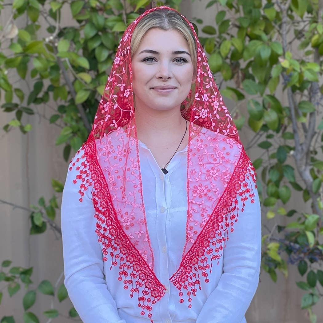 Cherry Blossom Church Veil - RED 48″ x 13″
