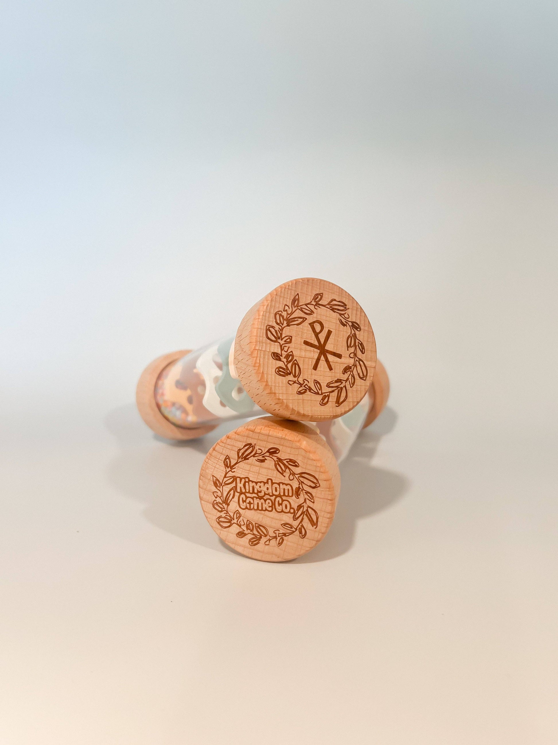 At one end of the rainmaker, you’ll find the Chi-Rho symbol lovingly engraved, symbolizing Christ’s presence and victory. This subtle touch of faith makes the toy not only a sensory delight but also a meaningful reminder of hope, peace, and love.