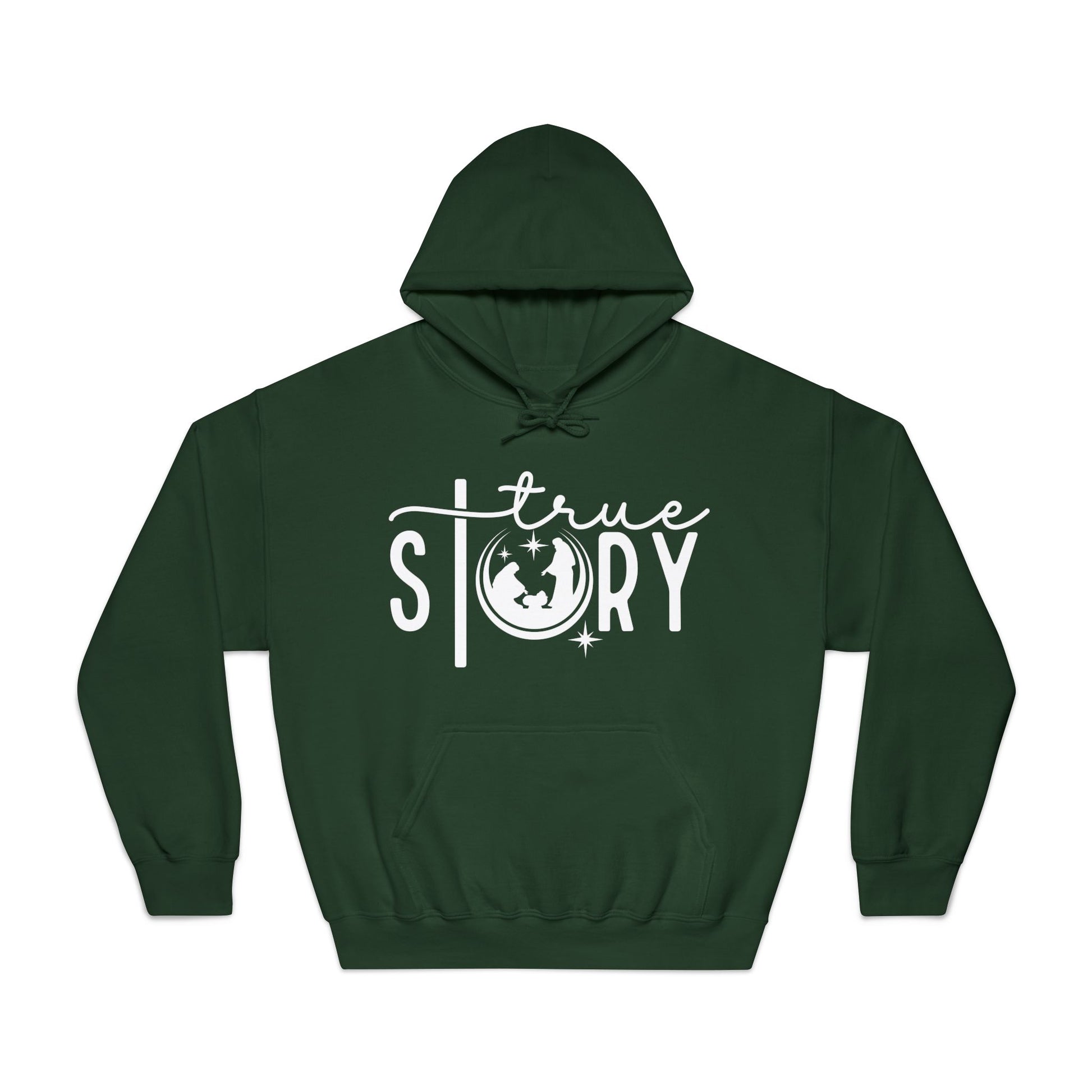 Stay cozy and festive with this True Story Christmas Hoodie. Perfect for the holiday season, this unisex DryBlend® Hooded Sweatshirt is made from a blend of cotton and polyester with moisture-wicking properties. The adjustable hood, double needle stitching, and ribbed cuffs ensure durability and a comfortable fit.