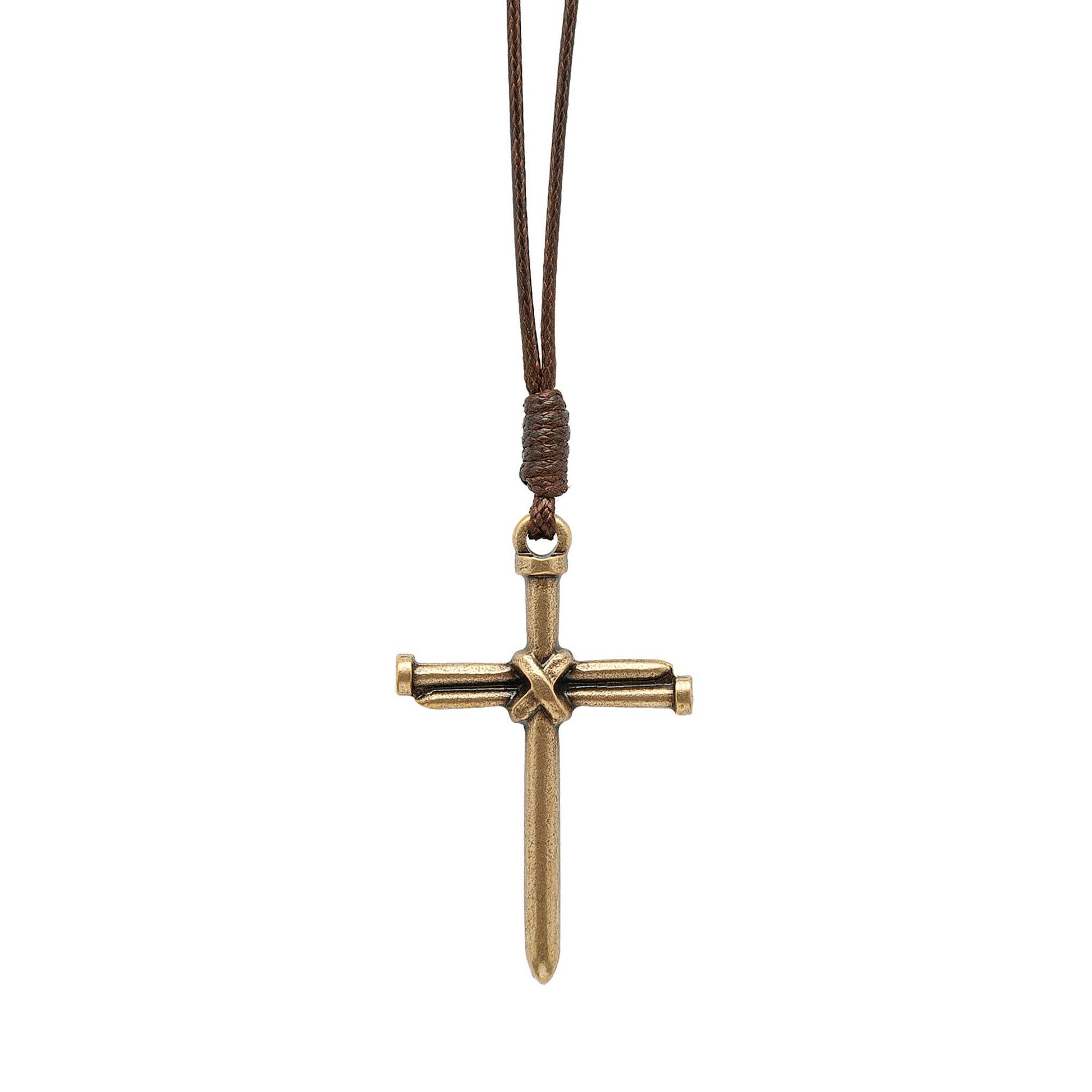 Elevate your accessory collection with this stunning Bronze Nail Cross Necklace.