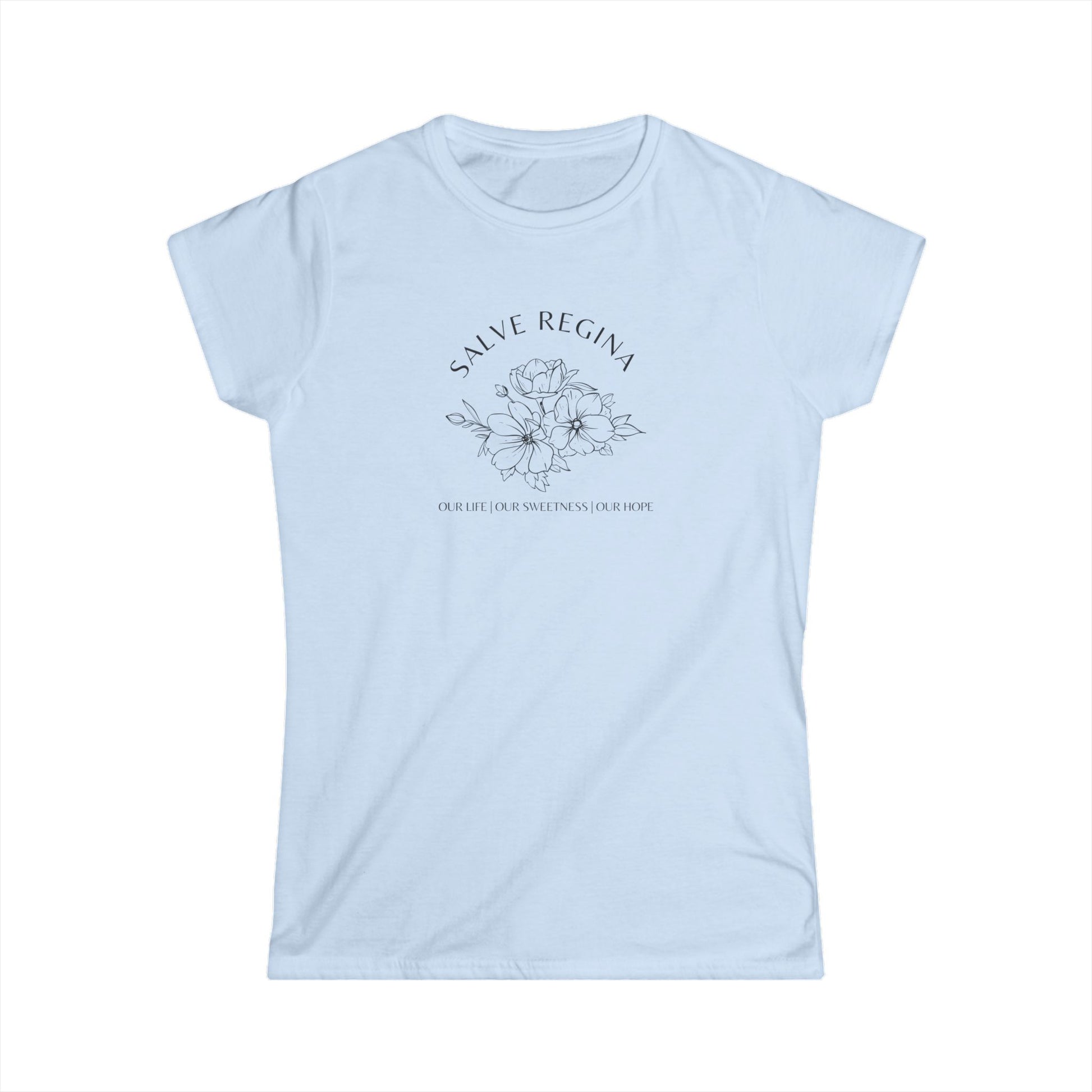 This Salve Regina T-shirt exudes a sense of calm and peace, making it perfect for those who appreciate a touch of spirituality in their wardrobe. Ideal for those who celebrate their love of Mary.