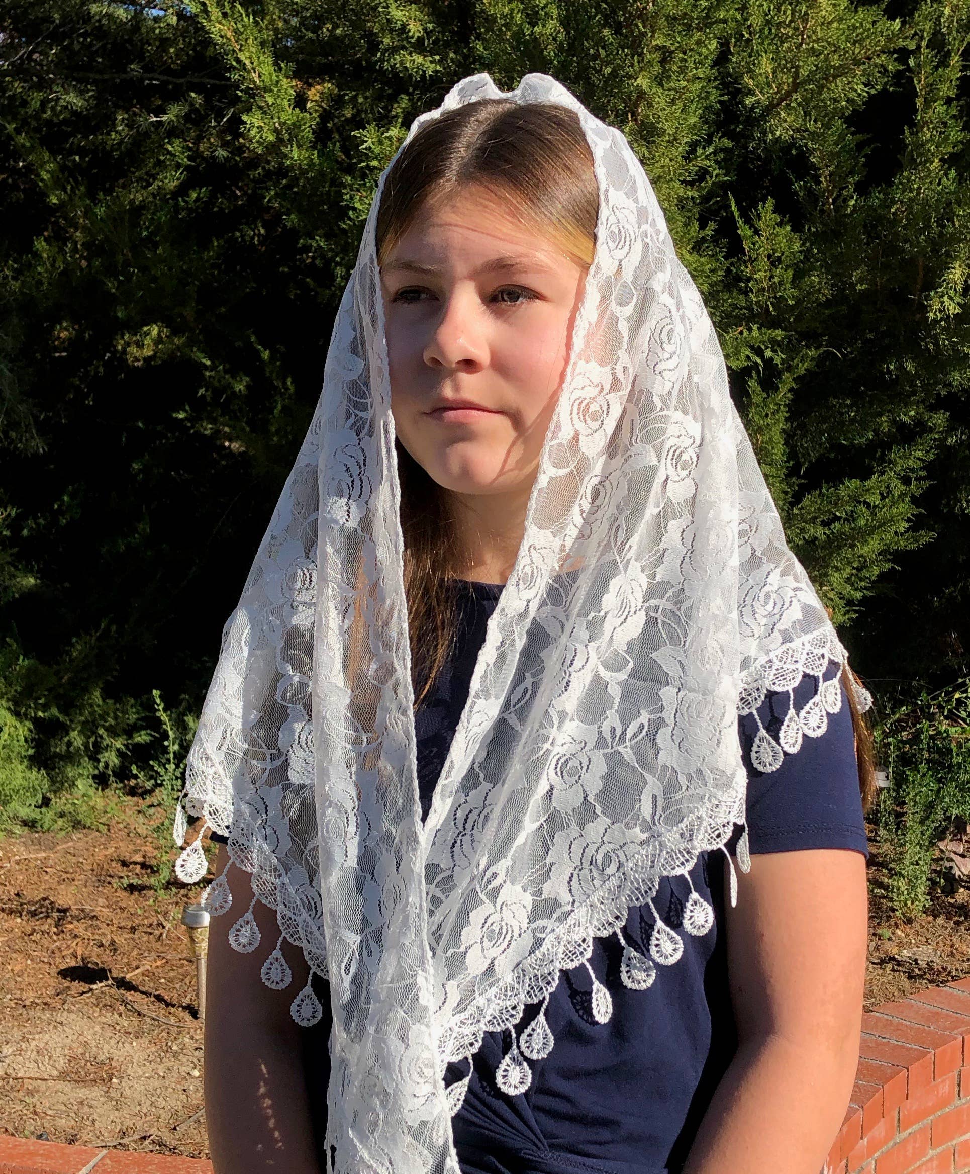 Beautiful Church Veil made with soft lace and matching color raindrops it is a perfect starter for anyone.