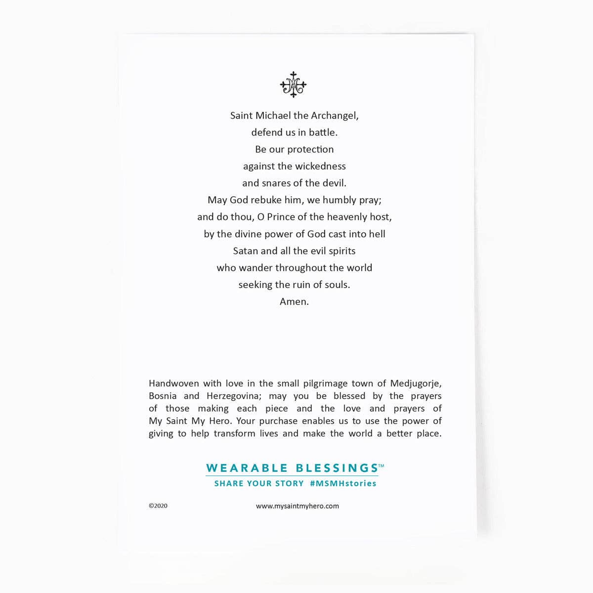 Archangel Michael is sent by God to protect each one of us, especially all children. Wear this blessing bracelet as a call to Archangel Michael, asking him to surround you with his army of protection. May his wings wrap around you as a shield of faith.